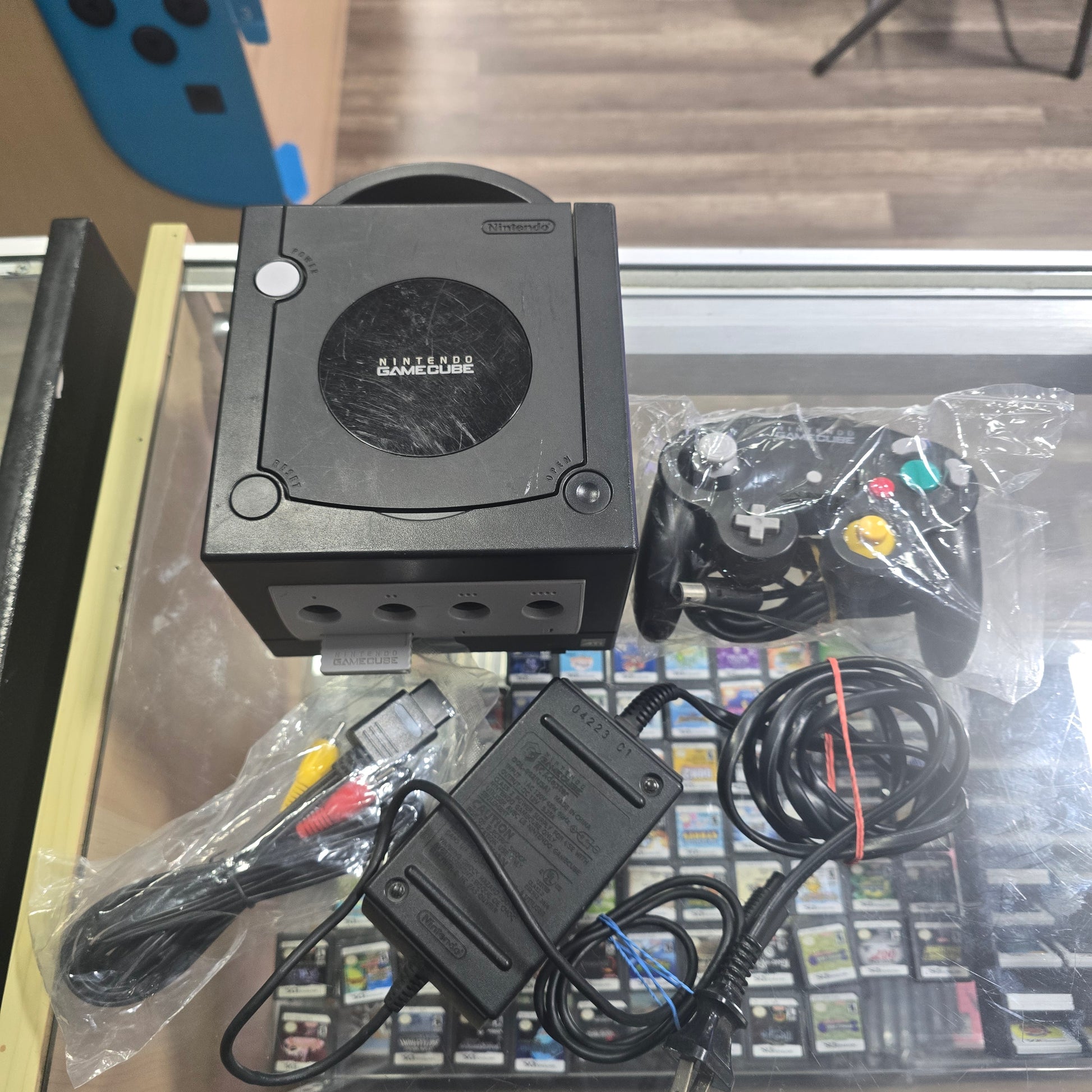 Black Nintendo GameCube System with One Controller and Wires